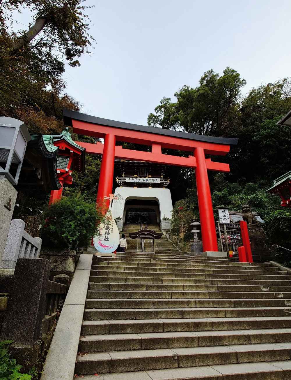 1日目、京都から夜行バスを利用し早朝に藤沢駅到着、そこから江ノ島電鉄を利用し江ノ島へ。