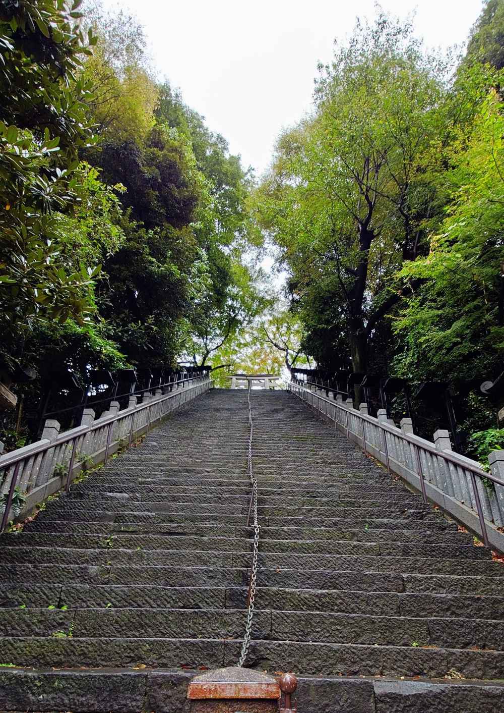 登山口正面にある出世の石段は急勾配で一段一段が高く中々疲れます(;^_^A